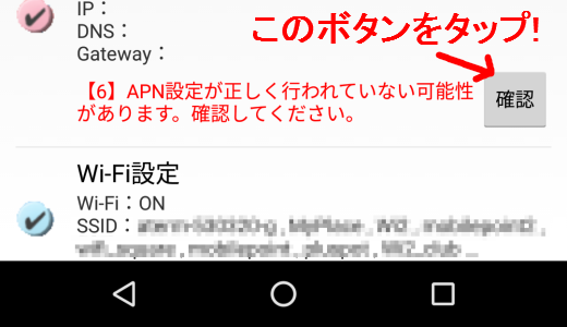 確認をタップすると、お使いのスマートフォン/タブレットの確認が必要な設定が表示されます。
